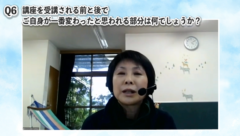自分自身を犠牲にして必死になって生きている自分というものを体験して分かったのです。だから、過去の生き方が現在の生き方につながっているというか、一致しています。講座を受けたことで、働き方もすっかりそのまま同じだということを体験して、自分のこれからの生き方をどう生きていくかというところに考え方を変えていけるというか、切り替えていけるきっかけになりました。